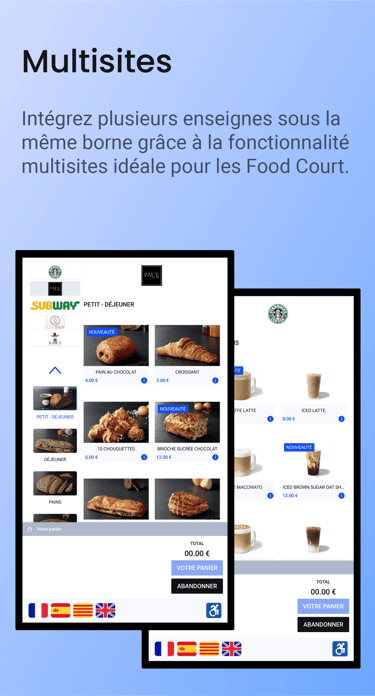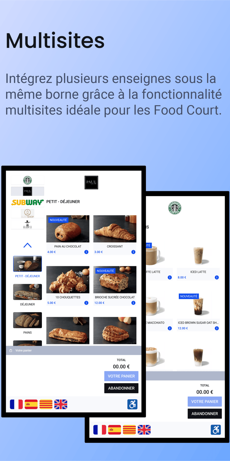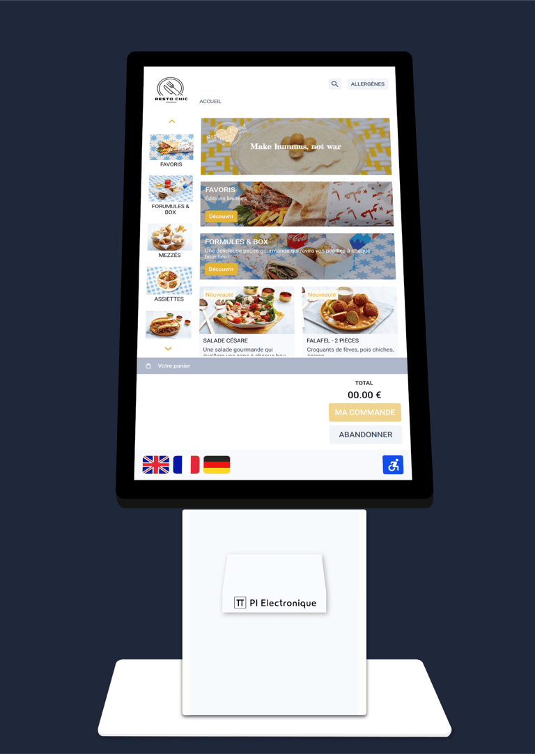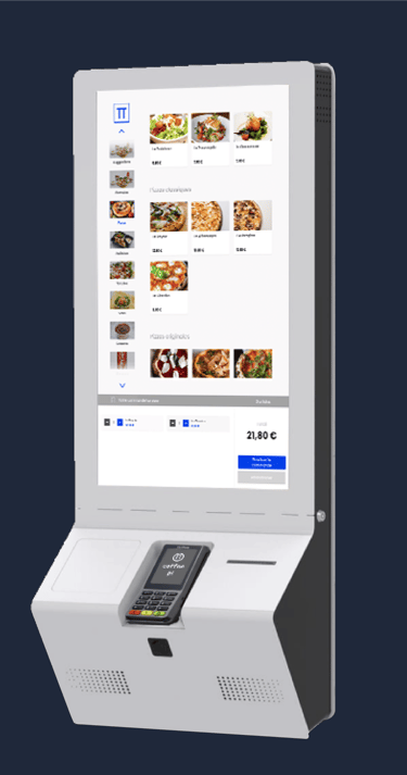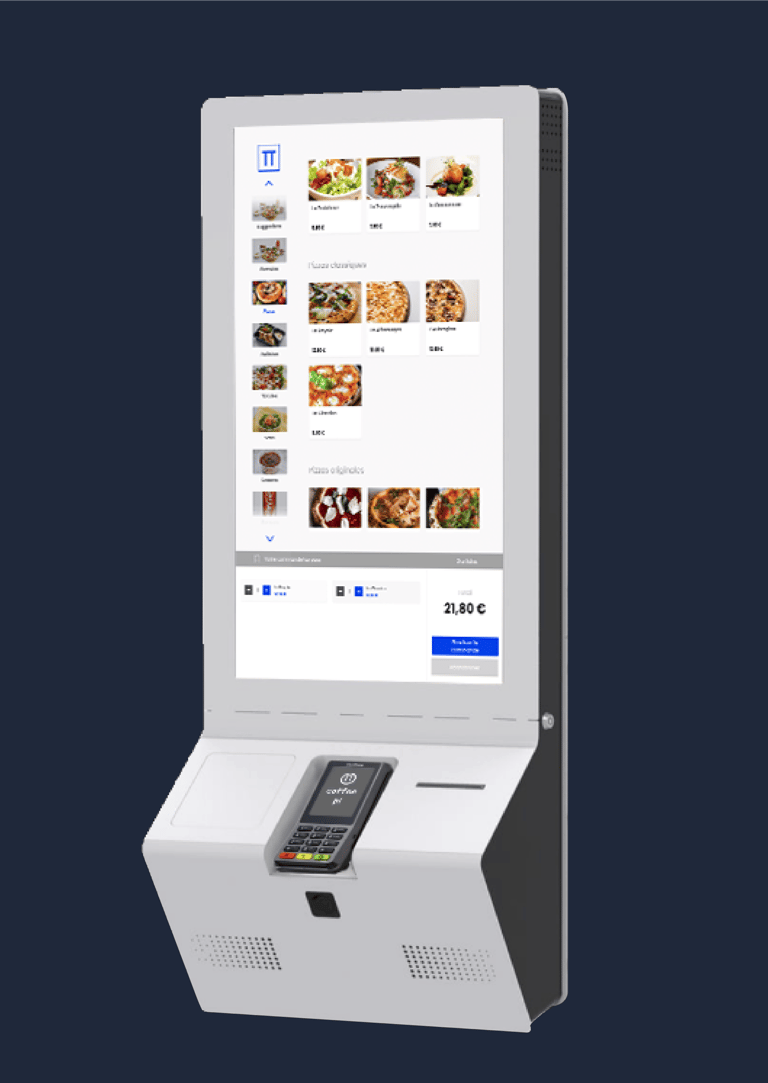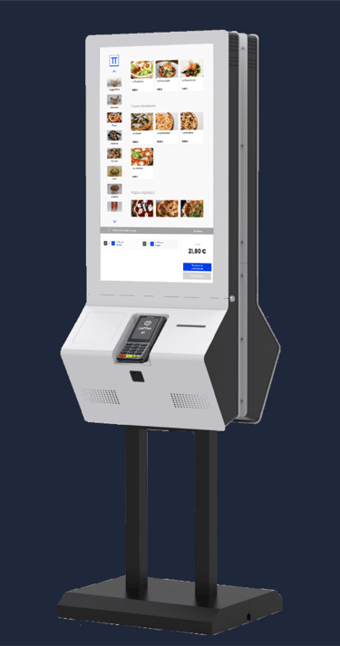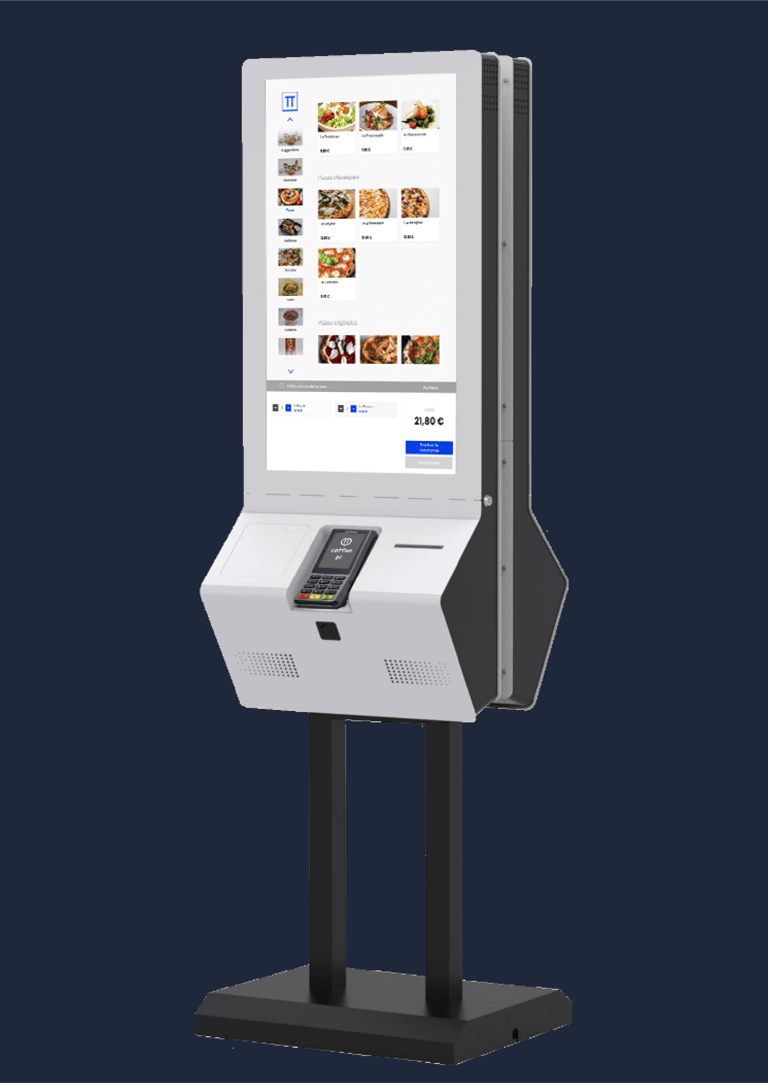Adaptée pour les restaurants à forte affluence quotidienne, la borne duo permet de doubler vos capacités de prises de commandes et encaissement.