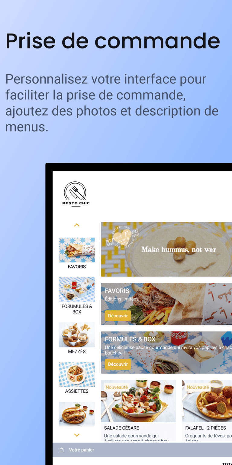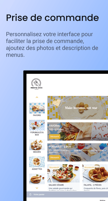 De nombreuses personnalisations sont disponibles pour une meilleure ergonomie afin de vous permettre de configurer une interface à l’image de votre restaurant.