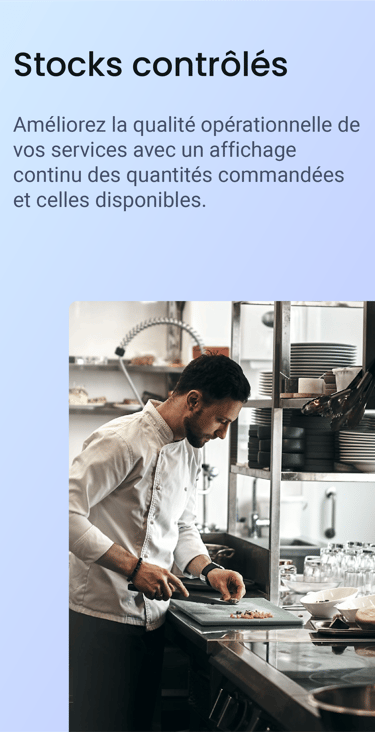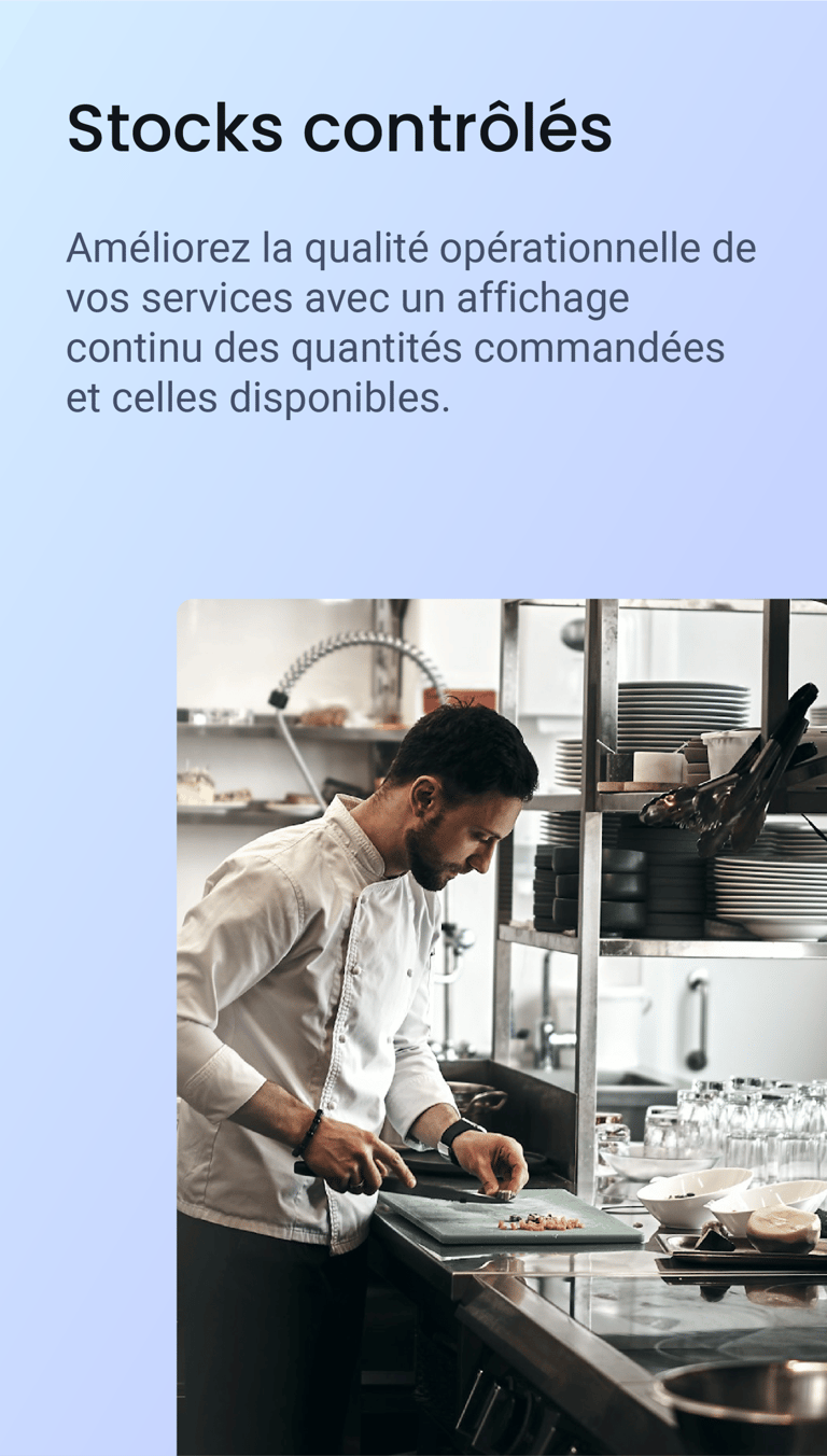 Optimisez la gestion de vos services et boostez la productivité de vos équipes. Offrez à vos cuisiniers une organisation simplifiée pour des préparations plus rapides, plus fluides et de meilleure qualité.